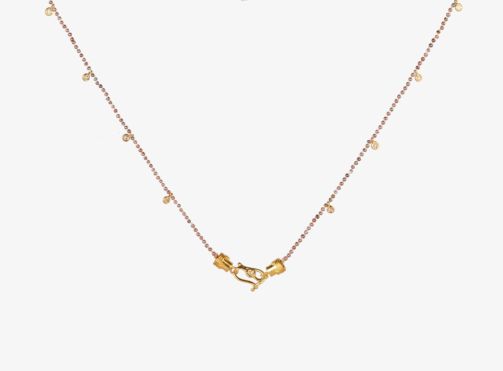 The Natural Pearl Abacus Necklace is handcrafted using ancient goldsmithing techniques dating back to the 3rd–5th century BCE. Each gold disc is individually formed and fused by hand. The strand features natural pearls, formed entirely without human intervention. Every piece is hand-fabricated by Jake in his New York City studio.